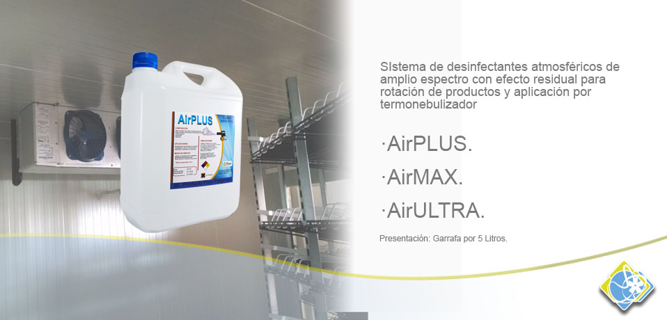 AirPLUS es un desinfectante atmosférico de amplio espectro con poder residual de protección por depósito en superficies, indicado en los sectores clínico-hospitalarios, Farmacéutico, Ornamentales y de alimentos.