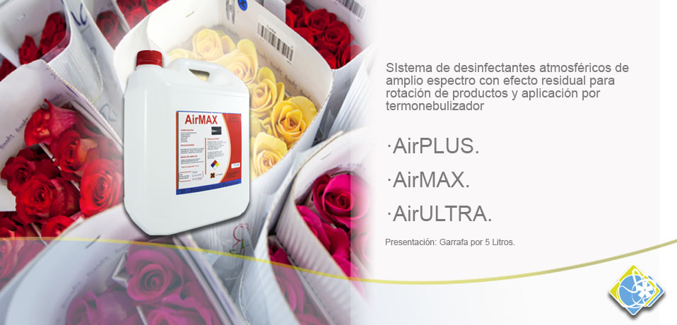 AirMAX es un desinfectante atmosférico de amplio espectro con poder residual de protección por depósito en superficies, indicado en los sectores clínico-hospitalarios, Farmacéutico, Ornamentales y de alimentos.